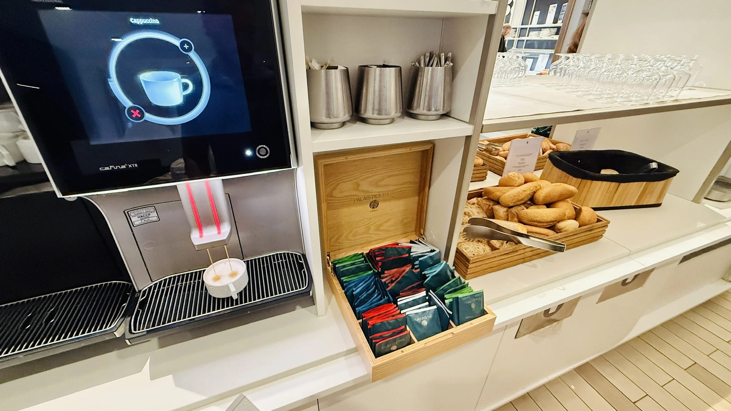 Next to the buffet was a tea and coffee station where I got a cappuccino. It was alright, cappuccino machines like these often tend to brew watery cappuccinos.