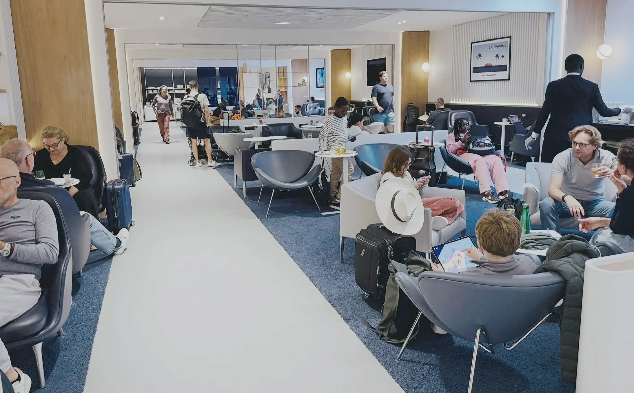 During my layover at Paris CDG Airport last year, I had the opportunity to visit a new Air France Lounge. I was flying from Montreal to South Africa with a layover in Paris. Air France runs several lounges to accommodate flights departing from each of CDG’s Terminals but my flight was departing from Terminal 2E Hall K so I headed to that lounge as it is the closest to my departure gate. The lounge is located just to your left after passing through Hall K security. You can walk right in and just scan your boarding pass at one of the many kiosks at the entrance otherwise the attendant at reception can scan your boarding pass. Access is complimentary for all Air France business class passengers. The lounge is spread out on two levels so you can head either upstairs or downstairs after the entrance.